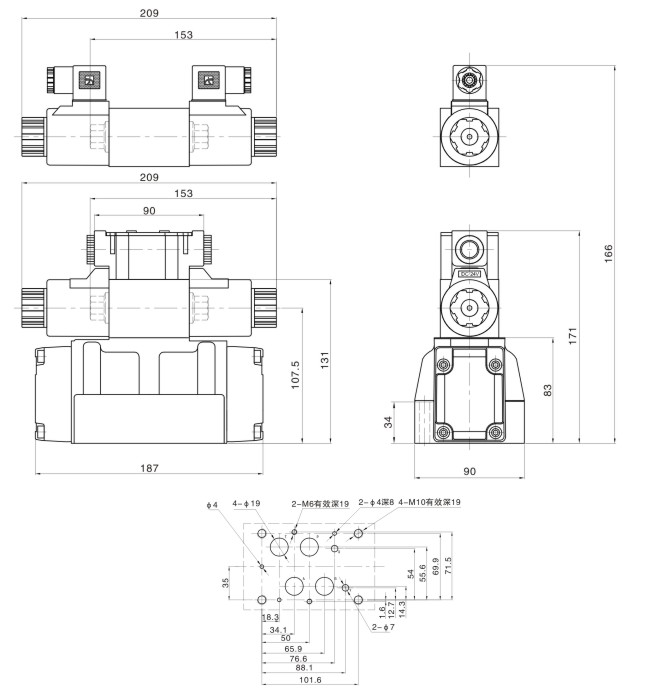 1、安裝面符合ISO4401、CET0P、DIN24340、NFPA規(guī)格,互通性強。