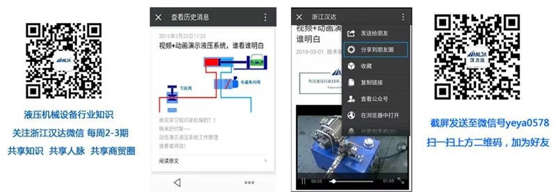 關(guān)注浙江漢達公眾號(微信號:zjhanda,下圖左邊二維碼)分享此文章微信版到您的朋友圈,并截屏發(fā)給微信號yeya0578(下圖右邊二維碼),即可入微信群《漢達班液壓系統(tǒng)學(xué)習(xí)分享群二》(《漢達班液壓系統(tǒng)學(xué)習(xí)分享群一》已滿員)